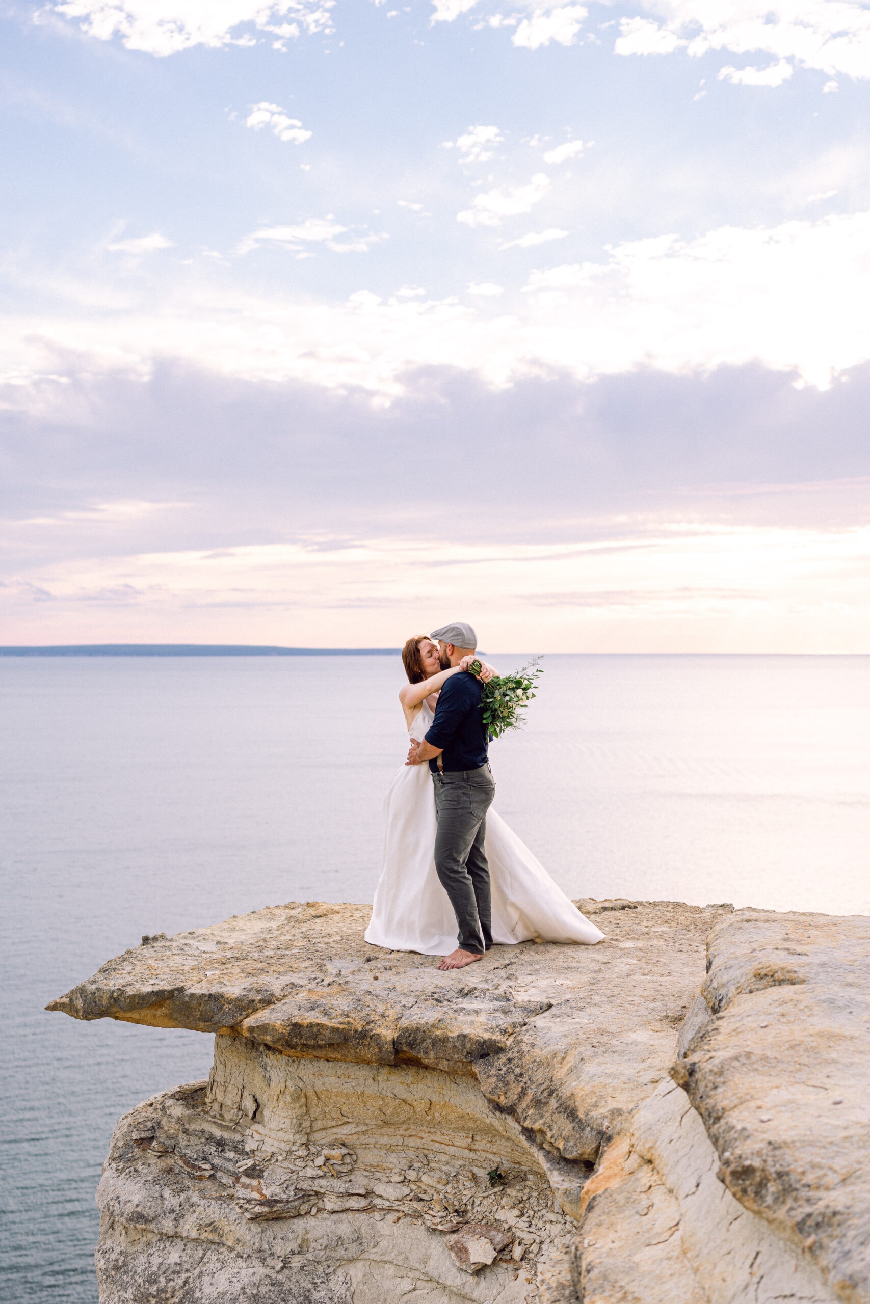 I’m not sure about you, but I certainly did not hike 10 miles the day after my wedding. But to Anna and Nick, of course they would plan a hike! Following the wedding, the adventure continued as the couple embarked on a 10-mile hike, carrying the bride’s gown and the groom’s change of clothes to capture stunning bridal portraits against the backdrop of Munising Falls and Pictured Rocks National Lakeshore. The pictures speak for themselves, check them out below!