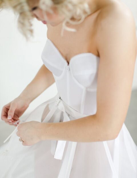 Selecting your wedding gown is an incredibly personal decision, and ensuring it fits flawlessly is just as important as finding the perfect silhouette! Our approach is entirely bespoke, offering thoughtful guidance and expert craftsmanship tailored to your individual shape, style, and vision. Every bride deserves a gown that not only fits beautifully, but feels like it was made just for her! Throughout the fitting process, we’ll listen closely to your needs, offer refined recommendations, and ensure each adjustment brings you closer to the gown of your dreams—with comfort, elegance, and confidence every step of the way!