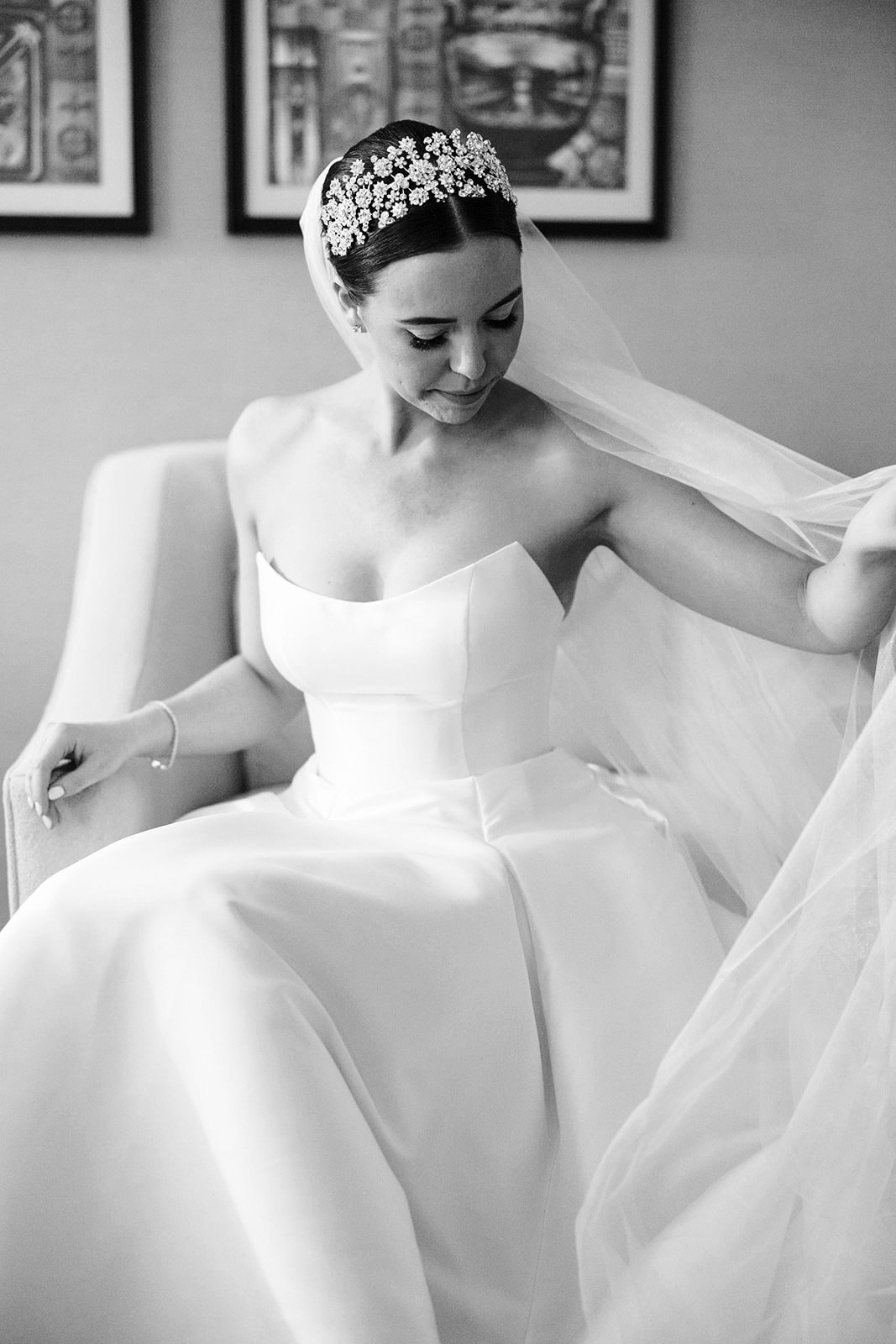 Yes—custom veils are a beautiful extension of your gown and can be created to complement your look perfectly. From delicate lace trims to minimalist silhouettes, each veil is crafted to enhance your overall bridal vision.