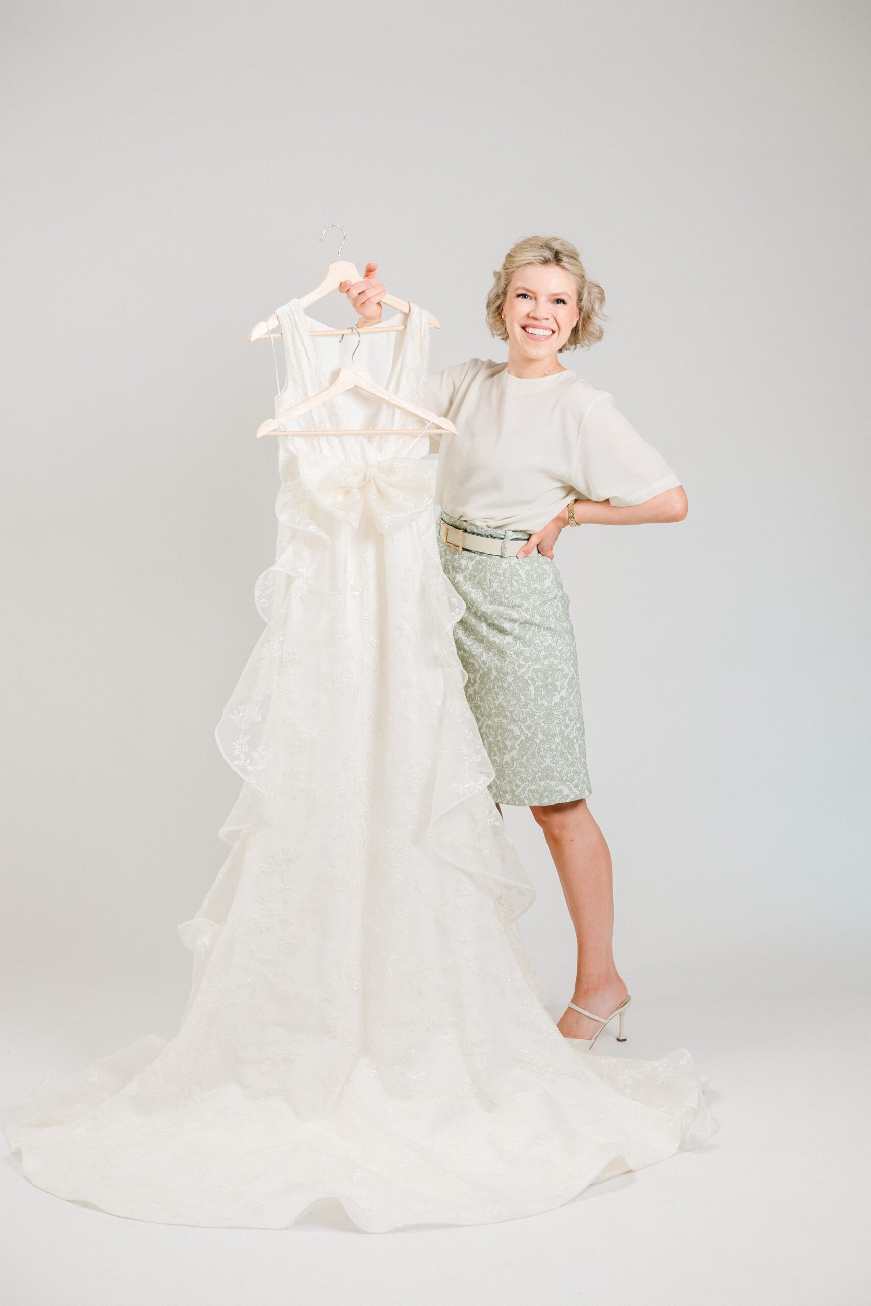 For $400, you have exclusive access to the all-new Sarah Kolis Couture Studio, with Sarah Kolis herself for an extended 2 hour appointment with up to 8 of your closest gals! You may use this appointment type for either your 1st or 2nd/last bridal alterations fitting. Why have such an upscale experience? Maybe you didn’t purchase a ultra-high-end designer bridal gown, but you want to be treated as such! Like a true royal visiting her favorite couturier for a private appointment. Ladies, we only get to do such extravagant dressing up gown moments very few times in our lives, often only once! Let’s make it extra! Let’s make it fab! Sarah Kolis herself will be welcoming your into her private studio with beverages, snacks, and even mimosa’s for you all to enjoy! You will receive a swag bag as well as private tour of the studio and so much more!